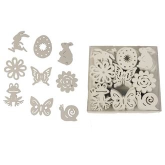 Sada jarních přízdob. Sada obsahuje 72 přízdob. Rozměry : 2,2 - 4 x 0,2 - 0,3 cm, výška 3 - 3,6 cm. Barva : bílá. Materiál na bázi dřeva. číst celé