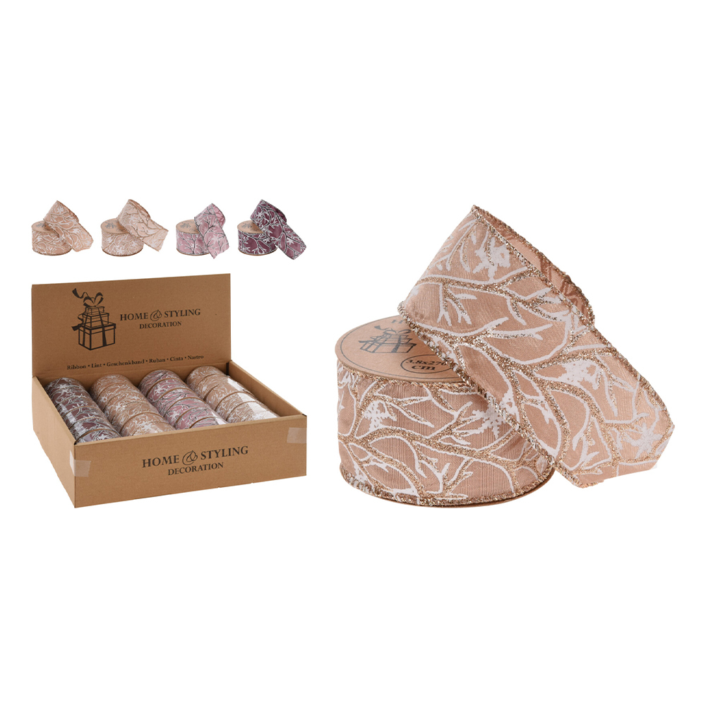 Dekorační stuha s vánočními třpytivými motivy ve 4 designech a metalickým vláknem.