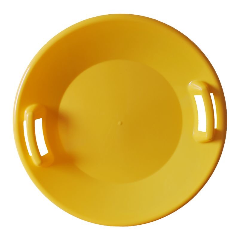 Kulatý kluzák ve tvaru talíře se zvýšenými okraji.