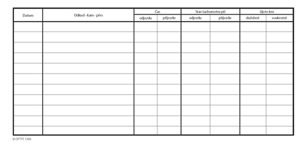 - Přehledná forma usnadňuje zaznamenávání jízd