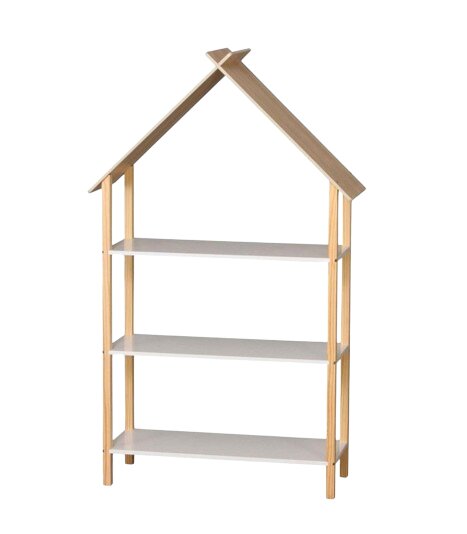 DOCHTMANN Dětská knihovna 3 police domeček, bambus, bílá 78,5x30x131cm