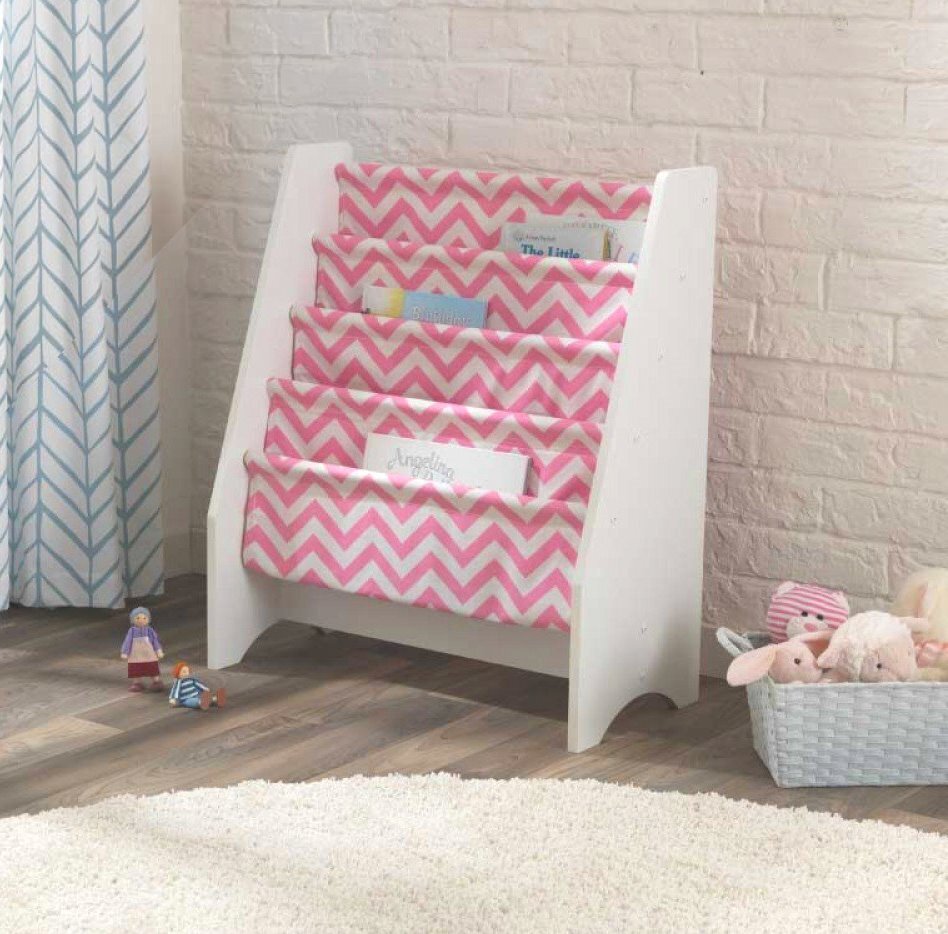 KIDKRAFT Knihovna s plátěnými policemi - růžovobílá