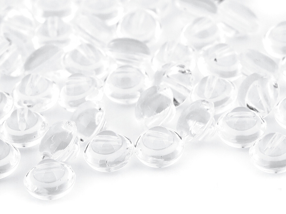 Transparentní plastové knoflíky mají spodní přišívání a hladkou polokulatou hlavičku. Knoflíky jsou vhodné k přišití na halenky, svetry, šaty apod. Dají se použít také na oči loutek a jiných dekoračních předmětů.Knoflíky jsou baleny v sáčku.Velikost knoflíků naleznete v této tabulce.