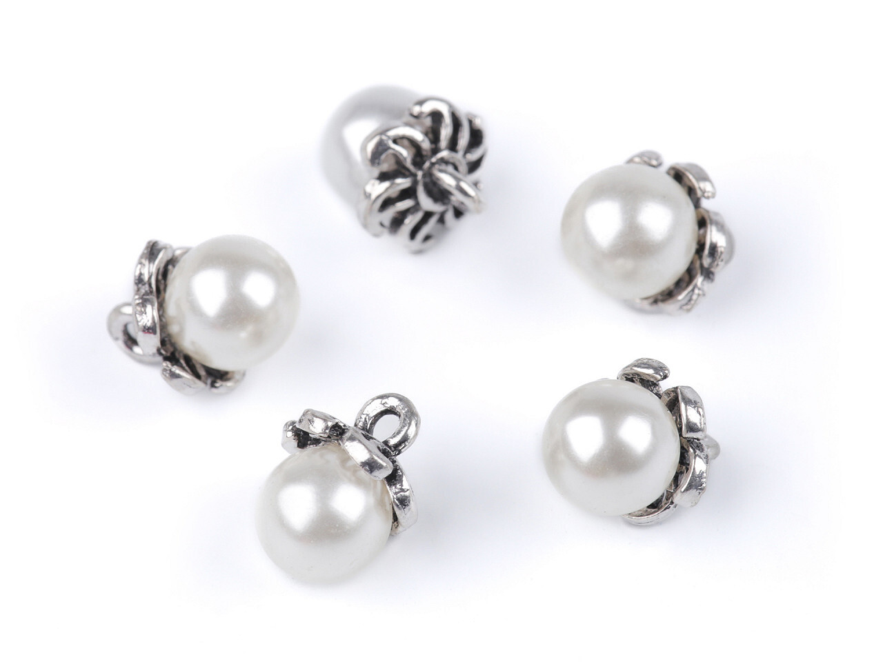 Knoflík s kaplíkem / přívěsek perla Ø9 mm - 25 ks - 2 perlová