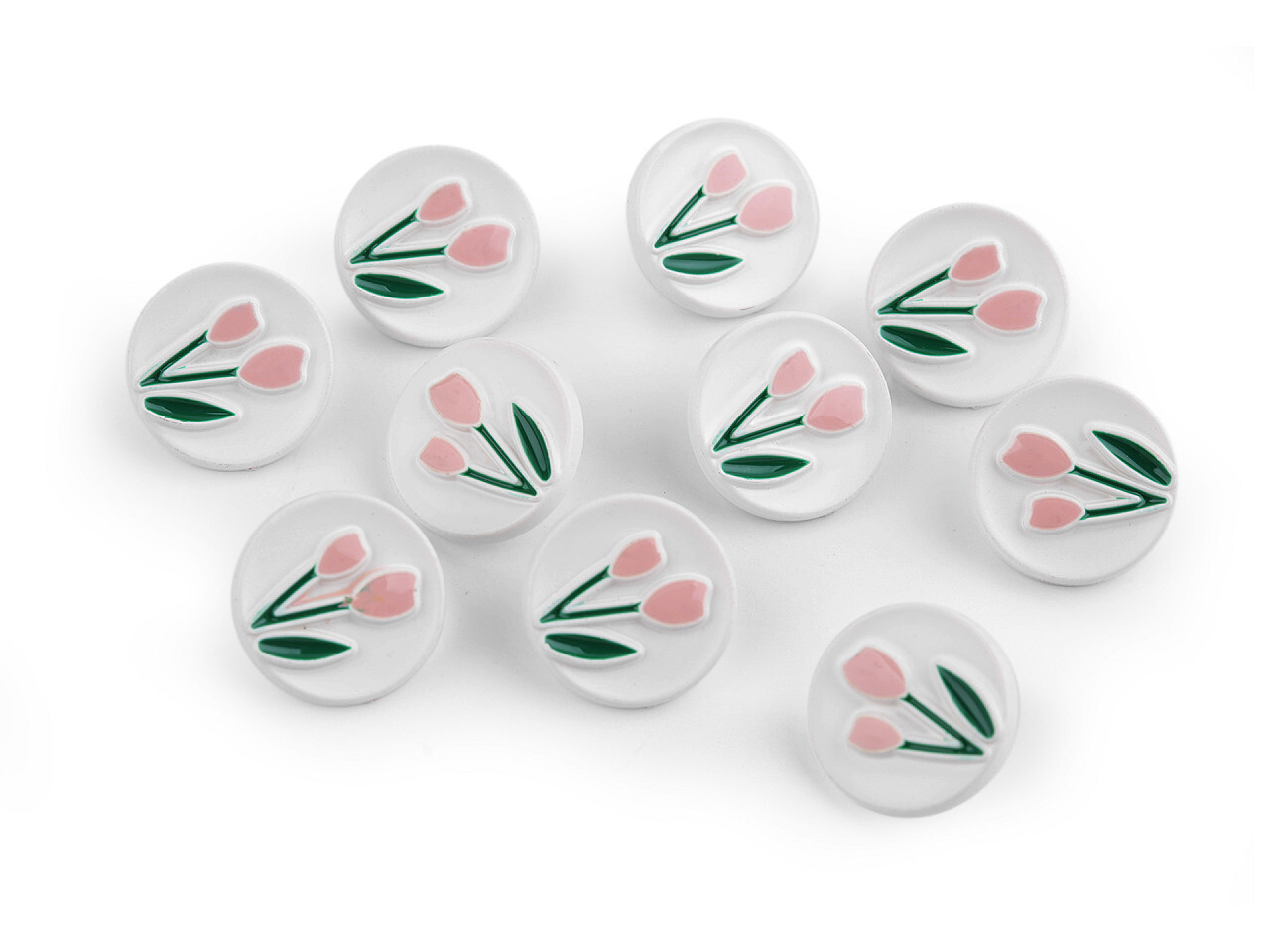 Knoflík tulipány velikost 28" - 25 ks - 1 bílá růžová