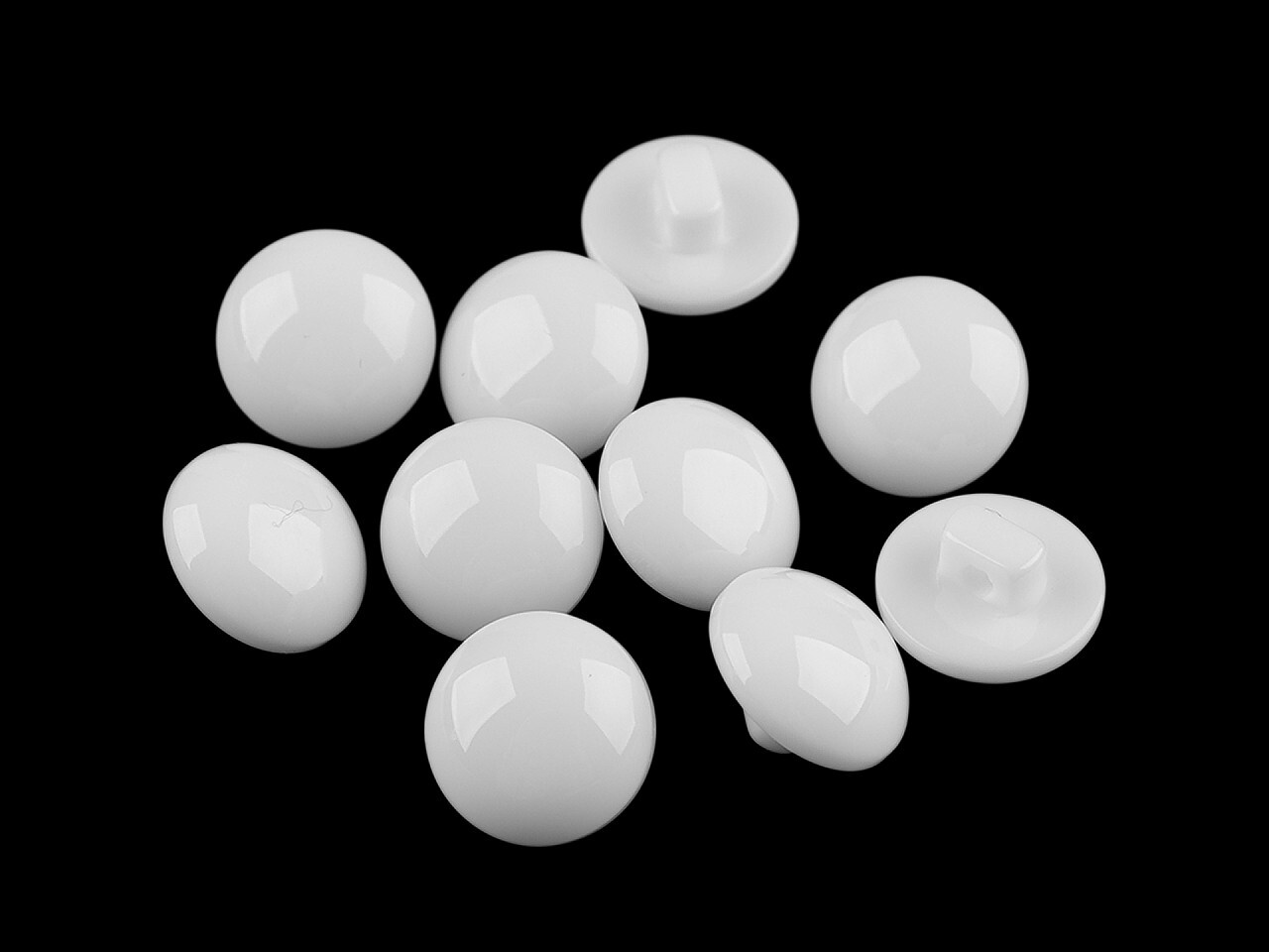 Plastové knoflíky mají spodní přišívání a polokulatou hlavičku. Jsou vhodné na halenky, šaty, svetry, kabátky apod., ale také je můžete použít jako oči loutek a různých postaviček. Velikost knoflíků naleznete v této tabulce.