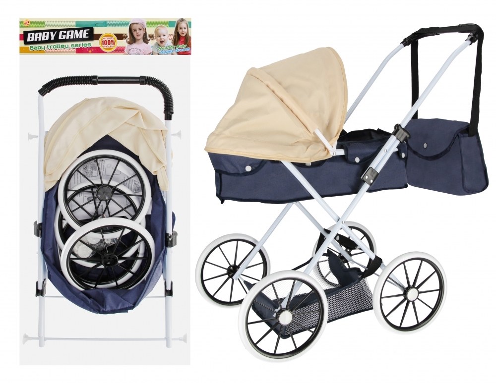 Zalety produktu: wózek dla lalek metalowy MEGA CREATIVE głęboki, każda mała dziewczynka marzy o lalce a tym bardziej o wózku w którym mogła by wozić swoją ulubioną zabawkę. Głęboki wózek którym możesz bawić się w domu, w ogrodzie a nawet zabrać ze sobą na długi spacer. Wózek wykonany z metalu, plastiku i materiału, wygląda jak prawdziwy wózek dziecięcy co pozwoli twojemu dziecku poczuć się jak rodzic i zaopiekować się swoją ukochaną laleczką, posiada duże plastikowe koła, składana buda wózka, wygodna rączka, materiałowa torba na najpotrzebniejsze rzeczy podczas spacerów. Zawartość zestawu: wózek głęboki w kolorze granatowym z dodatkiem koloru ecru. Wymiary/waga/baterie: wymiary produktu dł. x wys. x gł. cm -wózek rozłożony 65x72x35, wymiary torby dł. x wys. x gł. cm : 23x18x10, waga produktu bez opakowania kg. 0,99 kg. Wymiary produktu w opakowaniu dł. x wys. x gł.. cm 30x73x10. Waga produktu w opakowaniu kg. 1,01 kg. Przeznaczony dla dzieci w wieku 3 . Pakowany w folię. W kartonie po 12 szt.