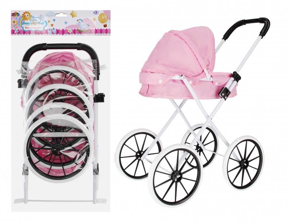 Wózek dla lalek głęboki metalowy różowy MEGA CREATIVE 536569