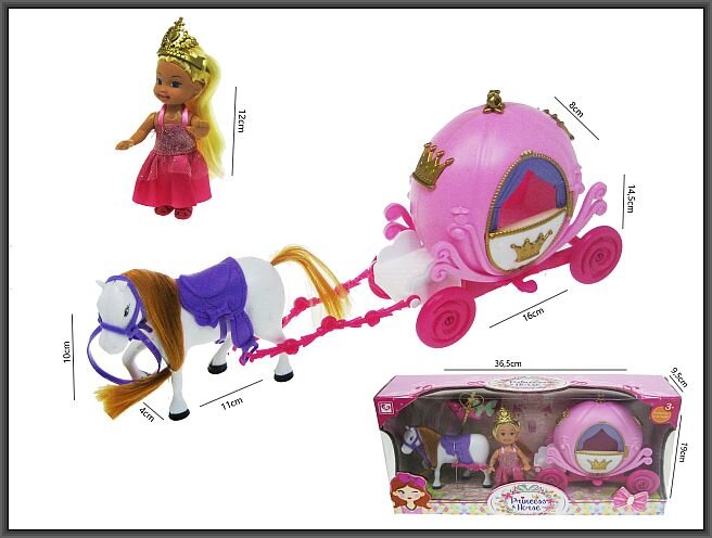 Lalka 11cm z karocą i koniem 36cm