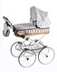 Kočárek Monika RETRO proutěný bílá konstrukce bílý s puntíky výška rukojeti 76cm nastavitelná