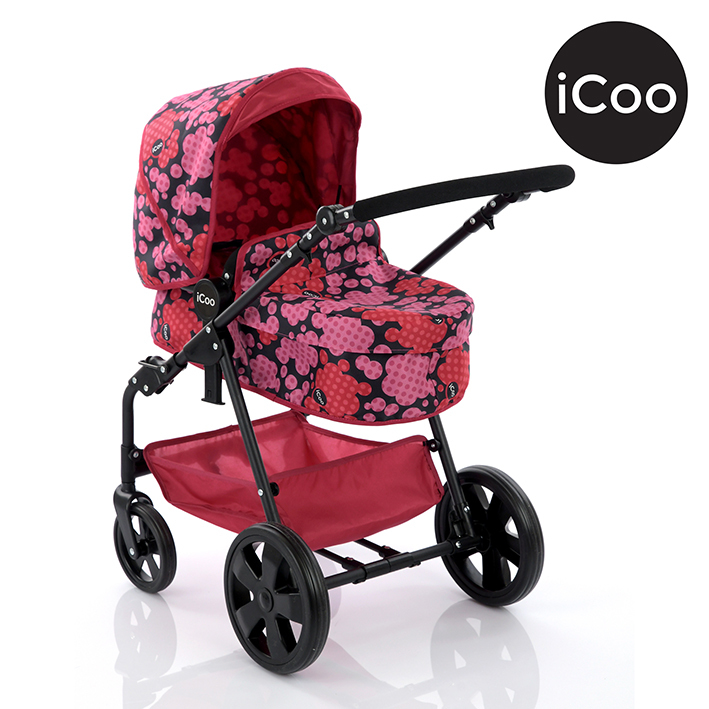 Kočárek pro panenky do velikosti 53 cm Korbička kočárku může být snadným pohybem přeměněna na sportovní kočárek. Velký koš pod sedadlem navíc nabízí dostatek místa pro dětské vybavení a nákupy. Tento kočárek je snadno ovladatelný díky otočným předním kolům a velkým zadním kolům. Rozměry sestaveného kočárku: 65x38,5x74 cm. Rukojeť se dá nastavit nejníže 45 cm a nejvýše 73 cm.