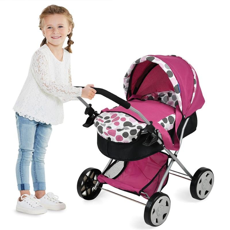 Kočárek pro panenky 43 cm. Obsahuje koš a vyndavací tašku pro panenku, která je připevněna patentkami. Váha kočárku je 1,3 kg. Rozložený rozměr: VxŠxH 62x38x57,5 cm Složený rozměr: VxŠxH 61,5x38x13,5 cm Vnitřní rozměr: 23x46,5 cm Výška rukojeti: 57,5 cm Průměr kol: 13,5 cm