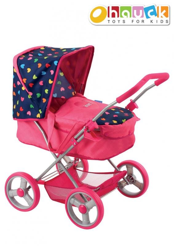 Kočárek pro panenky. Hmotnost kočárku je 1,4kg, rozložený kočárek má velikost 59,5x36x50cm. Rozměry složeného kočárku 67x38,5x16cm. Výška madla 58,5cm (nepolohovatelné). Průměr koleček 16,5cm. Kočárek má spodní úložný prostor, stříšku nad panenku. Do kočárku se vejde panenka do velikosti 43 cm (dodáváno bez panenky). Doporučený věk 3+.