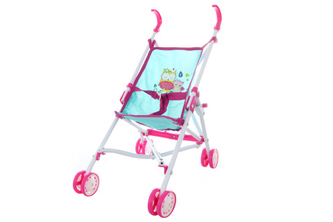 Skládací kočárek golfky se sovičkami. Kočárek má kovovou konstrukci. Rozměry kočárku cca 23 x 50 x 45 cm. Baleno v igelitovém sáčku. Rozměry balení cca 17,5 x 73 x 7 cm. Věk 3+