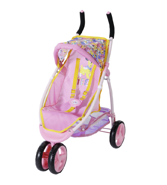 BABY born se se svojí maminkou a tatínkem moc ráda prohání po parku. Tudy rovně, zahnout k rybníčku a tady ostře doprava. Jejda, kytičky, otočit! Na hřiště! Utíkej, co nejrychleji můžeš. Tento mrštný tříkolový kočárek tohle všechno zvládne. Během náročných jízd je BABY born v kočárku pevně připoutaná bezpečnostním pásem.ěkká madla jsou ve výšce 72 cm. Barevnou stříšku lze složit. Pod kočárkem je praktický úložný prostor na všechny nezbytnosti. o Originální doplněk pro panenky BABY born. o Pro nápaditou, roz
