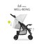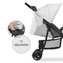 Pokud je Váš malý poklad unavený, je možné pomocí jedné ruky postupně sklopit opěrku zad až do polohy vleže. Opěrku nohou lze rovněž regulovat do více poloh. Okénko ve stříšce slouží nejen ke větrání, ale i k pohledu na dítě. O bezpečí Vašeho dítěte na cestách se postará 5bodový bezpečnostní pás a přední madlo. Zajišťovací brzda zaručí, aby kočárek po zastavení zůstal bezpečně stát na místě.