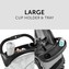 Velmi praktický // Tento super lehký a šikovný sportovní kočárek disponuje dvěma držáky nápojů. Na rukojeti jsou tak nápoje na dosah mamince a tatínkovi i jejich malému pokladu. Vše tak vždycky má své správné místo. Ideálně se tento kočárek hodí na cesty, nákupy nebo na brázdění městskými uličkami.