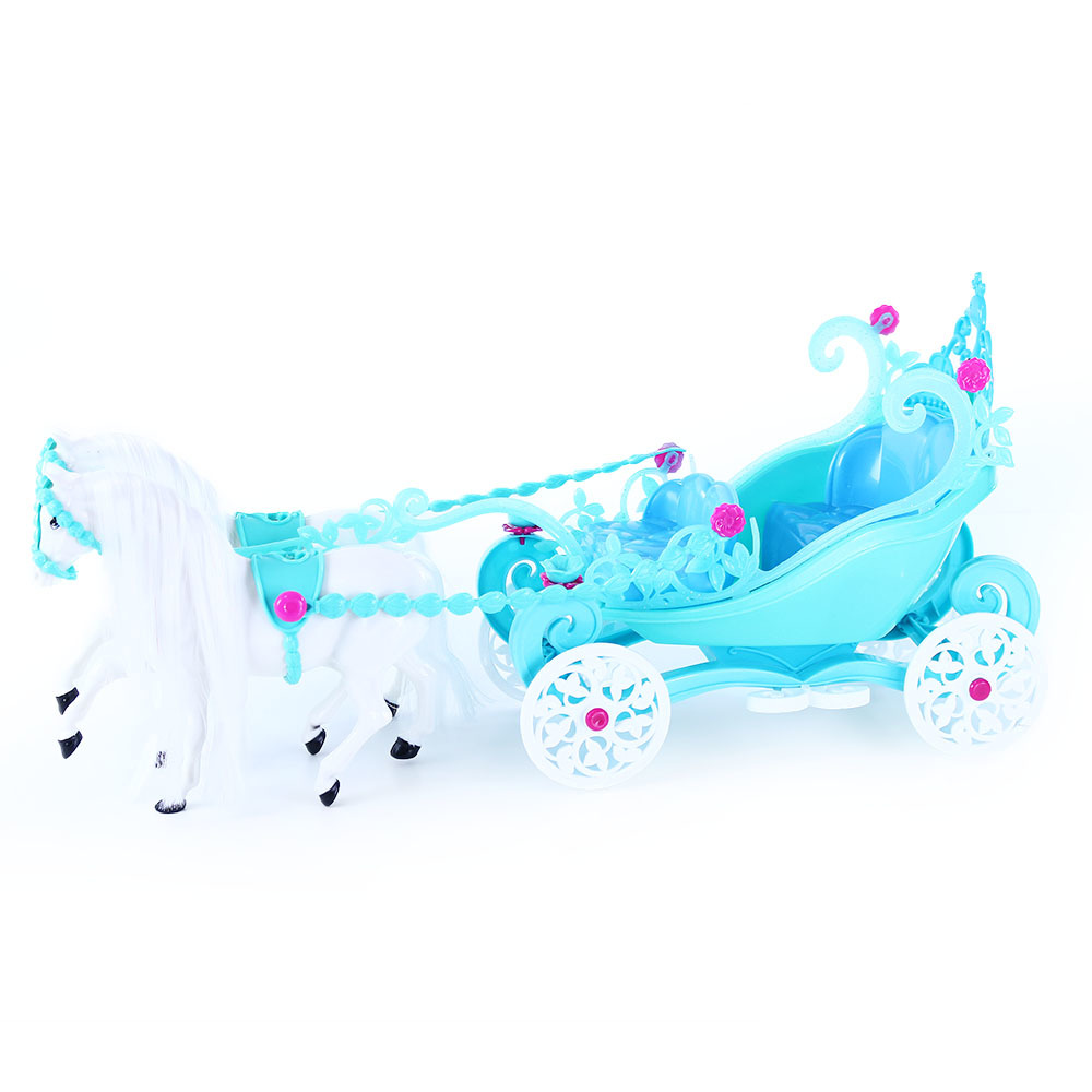 Dva koníci s dlouhou bílou hřívou jsou zapřažení za krásný pohádkový kočár, ve kterém můžeš vozit své panenky. Pořiď si tuto báječnou hračku a vyjeď se svými panenkami na okouzlující výlet! číst celé