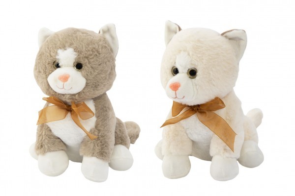 Kočka/Kočička sedící s mašlí plyš 23cm 2 barvy v sáčku 0+