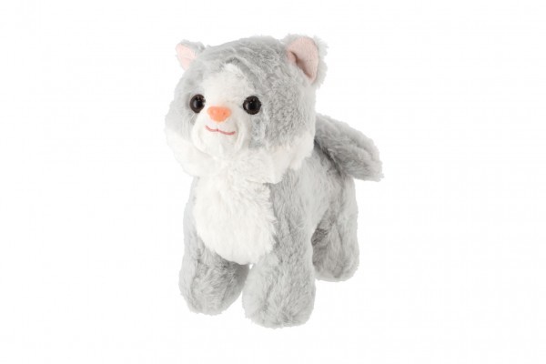 Kočka/Kočička stojící plyš 23cm šedivá se zvukem v sáčku 0+