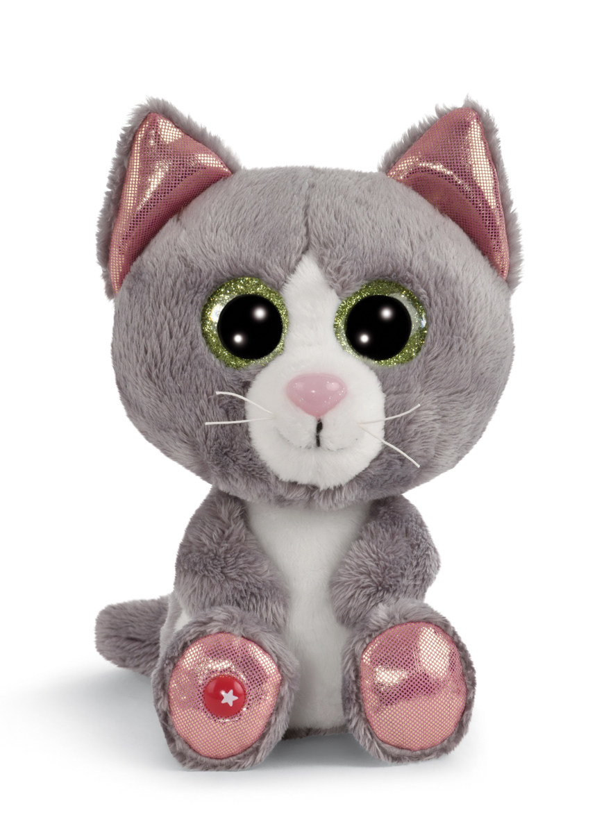 Sladká šedá kočka s třpytivýma očima a růžovýma lesklýma ušima a tlapkama. V sérii GREEN od Nici se téměř výhradně používají plyšové a výplňové materiály vyrobené z recyklovaných materiálů. Výška: 15cm. Věk: 0+
