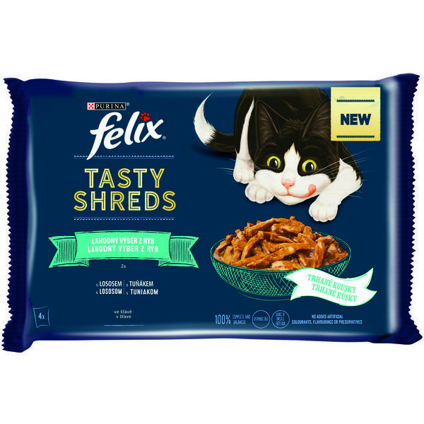 Kap.FELIX TASTY SHREDS Multipack losos a tunak ve stave 4x80g