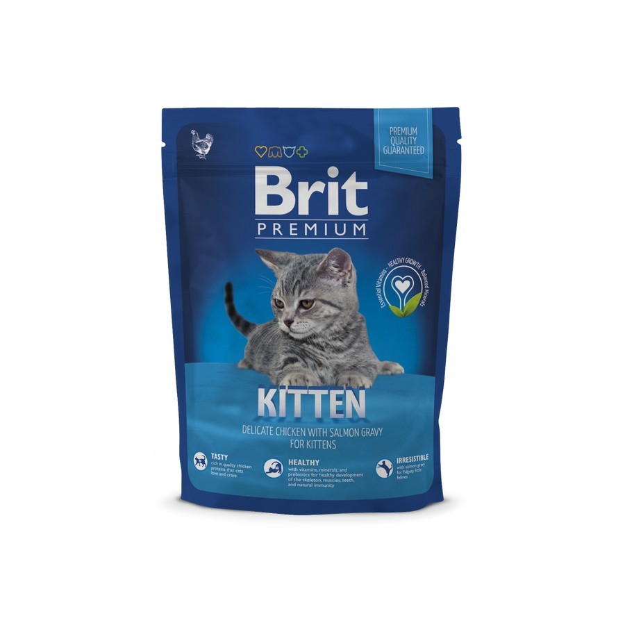 Lahodné kuřecí granulky s přídavkem delikátní omáčky z lososa pro koťata. Churné, zdravé, neodolatelné. Lahodné kuřecí granulky s přídavkem delikátní omáčky z lososa pro koťata. Složení: kuře 40% (sušené kuře 22%, kuřecí moučka 18%), rýže, kuřecí tuk (konzervovaný tokoferoly), kukuřice, pivovarské kvasnice, omáčka z lososa 4%, hydrolyzovaná kuřecí játra 2%, lososový olej 1%, cukrovarské řízky sušené, sušená pampeliška 0,25%, prebiotika (mannan-oligosacharidy 150 mg/kg, frukto-oligosacharidy 120 mg/kg,), extrakt z Yucca schidigera (80 mg/kg), výtažky z ovoce a bylinek (rozmarýn, hřebíček, citrusy, kurkuma, 60 mg/kg). Analytické složky: hrubý protein 38,0 %, obsah tuku 19,0 %, hrubá vláknina 2,0 %, hrubý popel 6,8 %, vlhkost 10,0 %, vápník 1,4 %, fosfor 1,1 %, sodík 0,3 %, hořčík 0,09 %. Nutriční složení: vitamin A (E672) 22 000 MJ, vitamin D3 (E671) 850 MJ, vitamin E (3a700) 600 mg, vitamin C (E300) 300 mg, taurin 2 200 mg, cholin chlorid 2 000 mg, L-karnitin 60 mg, niacin 40 mg, biotin 1,7 mg, zinek (E6) 140 mg, mangan (E5) 52 mg, železo (E1) 45 mg, měď (E4) 11 mg, jód (E2) 3,5 mg, selen (E8) 0,21 mg, DL-methionin (3c301) 13 mg, arginin (3c3.6.1) 10 mg, L-lysin (3.2.3.) 9 mg.