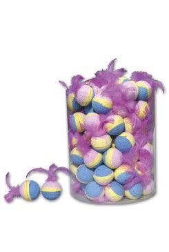 Měkký pěnový míček s peříčky je u koček velice oblíbenou hračkou, vhodný i pro kočky - seniory a koťata.Barva: různé barvyVelikost: 4 cm60 ks/tubus číst celé