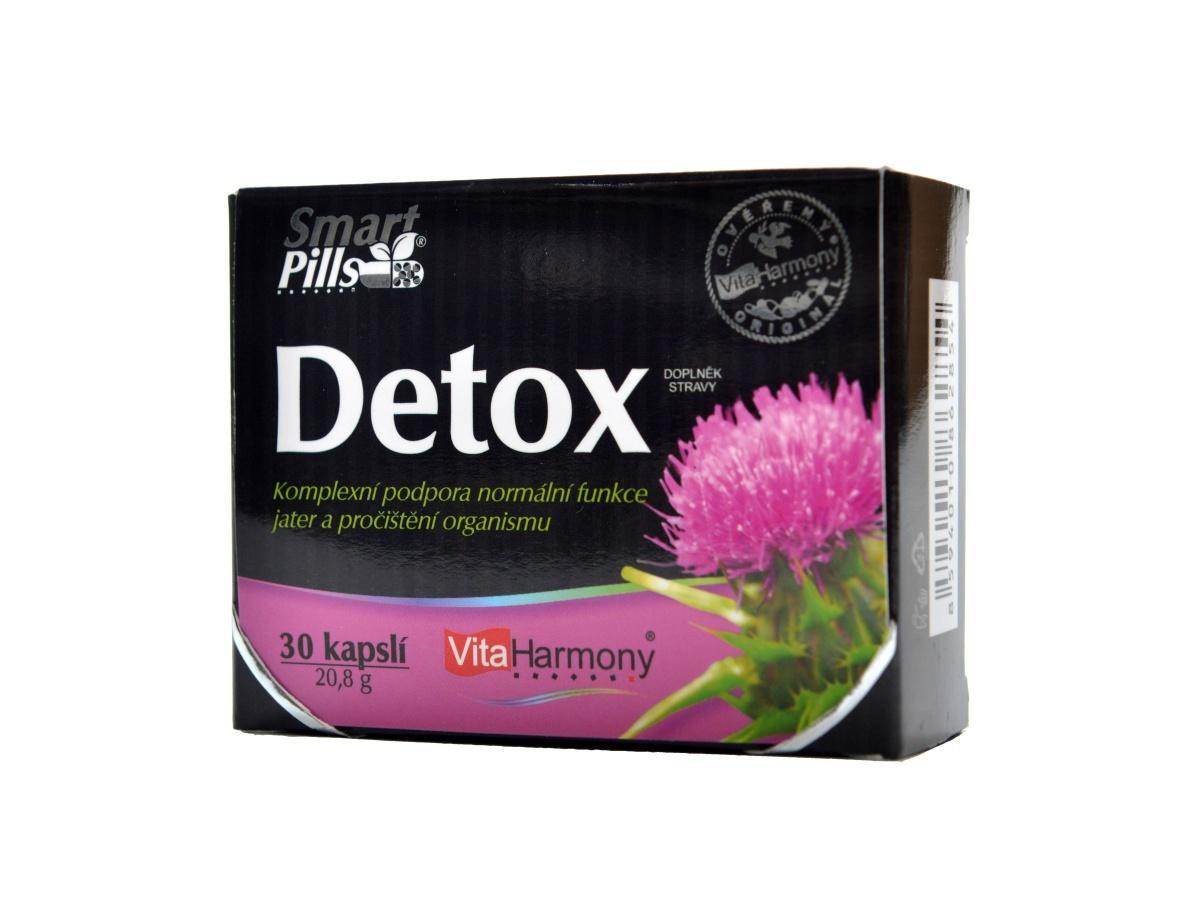 SmartPills® Detox je unikátní moderní doplněk stravy, který se skládá z pelet v kapsli naplněné olejem. Pelety obsahují cholin, kyselinu lipoovou, koenzym Q10 a riboflavin a kapsle je naplněna olejem z ostropestřce mariánského. Tento přípravek je komplexně zaměřen na podporu normální funkce jater a pročištění organismu. Olej z ostropestřce mariánského podporuje správné trávení a funkci jater a napomáhá k pročištění organismu. Cholin, který patří mezi vitaminy skupiny B, přispívá k udržení přirozené činnosti jater a napomáhá k normálnímu metabolismu lipidů a homocysteinu. Ostropestřec mariánský, kyselina alfa lipoová a riboflavin jsou silnými antioxidanty, které chrání buňky před oxidativním stresem. Riboflavin přispívá ke snížení míry únavy a vyčerpání a podporuje normální energetický metabolismus. Riboflavin napomáhá ke správné činnosti nervové soustavy a přispívá k udržení přirozeného stavu sliznic a pokožky.