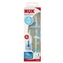 Wskazówki dotyczące użyciaPrzed pierwszym użyciem rozłożyć wyrób na pojedyncze części, umyć je i włożyć do wrzątku na 5 min. To służy higienie. Przed każdym użyciem dokładnie wymyć, aby zapewnić higienę. W razie potrzeby wysterylizować. Przechowywać w suchych i higienicznych warunkach. Do czyszczenia używać płynu do mycia butelek i smoczków NUK lub łagodnego płynu do mycia naczyń i usunąć resztki pokarmu ze wszystkich zakamarków. W razie potrzeby namoczyć wyrób, w żadnym wypadku nie wolno zarysować butelki od wewnątrz. Dokładnie wypłukać. Nie myć smoczków i butelek w zmywarce do naczyń - środek do mycia w zmywarce może uszkodzić materiał! Niektóre produkty spożywcze mogą spowodować odbarwienie materiału (np. sok z marchwi) lub zmienić zapach (np. herbatka z kopru włoskiego), co nie ma wpływu na przydatność produktu do użycia. Jeżeli butelka jest uszkodzona od wewnątrz (np. porysowana), należy ją wymienić z powodów higienicznych. Do wygotowania lub wyparzenia zawsze rozłożyć butelkę na pojedyncze części i pozostawić je otwarte, w innym razie może dojść do odkształceń. Do wyparzania zalecamy sterylizator parowy NUK lub sterylizator parowy do kuchenek mikrofalowych NUK. Aby uniknąć uszkodzenia materiału, zawsze przestrzegać instrukcji użytkowania wydanej przez producenta sterylizatora. Podczas dezynfekcji butelek plastikowych nie należy przekraczać maksymalnie dopuszczalnej temperatury 100°C (podanej na butelce)! Kolory zmieniające się pod wpływem temperatury są wrażliwe na wilgoć i temperaturę oraz środki odkamieniające. Częste gotowanie lub sterylizacja spowoduje z czasem wyblaknięcie kolorów. Smoczki na butelki: przed użyciem sprawdzić smoczek na butelkę i rozciągnąć go we wszystkich kierunkach. W przypadku zauważenia pierwszych śladów uszkodzenia lub zużycia smoczek należy wyrzucić. Przed każdym użyciem należy sprawdzić drożność zaworka wentylacyjnego i otworu smoczka przez lekkie rozciągnięcie. Nie zanurzać w lekarstwach! Nie wystawiać smoczka ani butelki na bezpośrednie działanie promieni słonecznych lub ciepła ani nie pozostawić dłużej niż podano w środku dezynfekującym (roztworze do sterylizacji), ponieważ może to zmniejszyć wytrzymałość smoczka lub uszkodzić materiał. Ze względów higienicznych smoczek należy wymieniać co 1 - 2 miesiące. Smoczki lateksowe: wykonane z naturalnego kauczuku. Butelki szklane: do mieszania w butelce nie używać łyżeczek metalowych - mogą wtedy powstać mikropęknięcia powodujące późniejsze zniszczenie butelki. Nigdy nie używać siły przy odkręcaniu / zakręcaniu butelki. Wymienić butelkę, jeśli występują najmniejsze oznaki uszkodzenia, takie jak pęknięcia itp. Zawsze podgrzewać otwarte butelki (ryzyko eksplodowania) i następnie wystudzić (ryzyko deformacji)! Należy zachować szczególną ostrożność podczas podgrzewania w kuchence mikrofalowej; może nastąpić nierównomierne ogrzanie pokarmu. Po podgrzaniu potrawy należy zawsze wymieszać i sprawdzić temperaturę przed karmieniem. Prosimy zachować informacje o produkcie i nr wyrobu/partii do późniejszego wykorzystania. EN 14350.