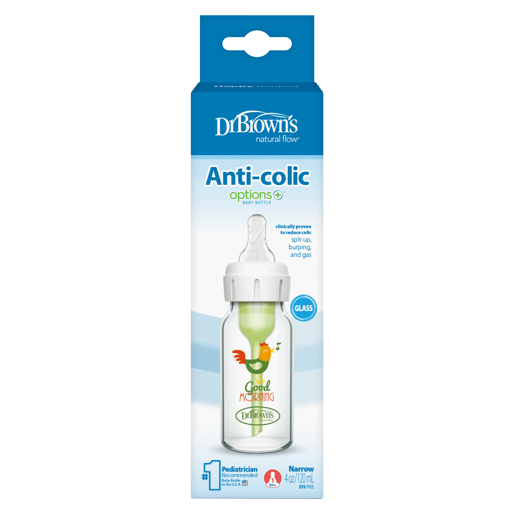 Butelka antykolkowa Dr Brown’s Options+ szklana jest przeznaczona do karmienia maluszka od pierwszych dni życia. Wyposażona w smoczek o najwolniejszym przepływie (poziom 1). Pojemność 120ml.