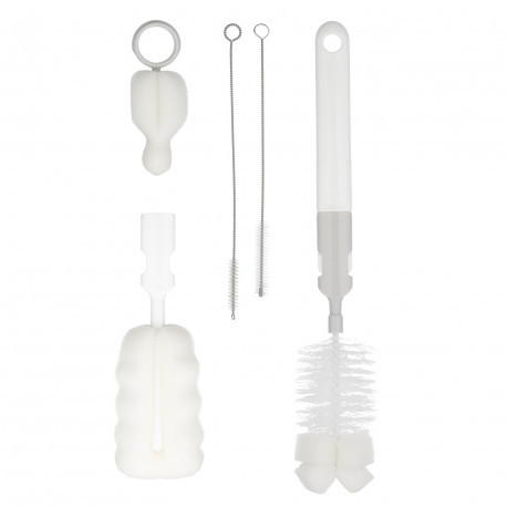 Sada obsahuje kartáč s hubkou pro důkladné očištění vnitřku lahve, pěnový kartáč k odstranění nečistot ze saviček a další drobné kartáčky pro precizní čištění. Tato kombinace zaručuje, že vaše dětské potřeby budou vždy čisté a připravené k dalšímu použití.