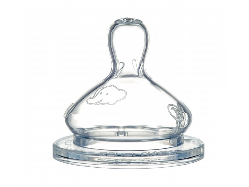 Silikonová savička Bebeconfort Emotion svým tvarem a vlastnostmi připomíná mateřský prs. Dítě tak téměř nepociťuje rozdíl mezi kojením a krmením z lahvičky. Dvojitý ventilační systém na okraji savičky citlivě zabezpečí únik vzduchu z láhve, tím umožní plynulé sání tekutiny a zároveň snižuje riziko břišní koliky. Savička s pomalým průtokem je určena pro děti od narození do cca 6 měsíců. Neobsahuje bisfenol A.