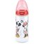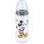 Nasze butelki do nauki picia z Myszką Miki i Mini pomagają dzieciom w nauce samodzielnego picia. Postaci z jednej z najbardziej popularnych bajek Disneya w nowoczesnym wydaniu zdobią nasze butelki do nauki picia oraz cieszą zarówno młodych, jak i starszych fanów. Wejdź w wyjątkowy świat Myszki Miki i Mini! Pojawienie się dziecka to wielka rewolucja w życiu. Wtedy dodatkowe zabezpieczenie sprawia, że jesteście spokojniejsi. Butelki NUK First Choice+ z czujnikiem temperatury pokazują, gdy zostanie osiągnięta właściwa temperatura pokarmu. Skala na butelce z czujnikiem temperatury zmienia kolor w zależności od temperatury zawartości. Jeżeli pokarm jest za gorący, zwykle niebieski wskaźnik zmienia kolor na biały. Uwaga: Wskaźnik temperatury NUK jest przewidziany jako dodatkowa weryfikacja. Prosimy o sprawdzenie temperatury bezpośrednio przed podaniem pokarmu dziecku. Butelka posiada naturalny i odpowiedni dla szczęki, szczególnie miękki smoczek silikonowy, 6-18 miesięcy, M (do mleka modyfikowanego) oraz antykolkowy system odpowietrzania NUK Air System który zapewnia swobodny wypływ pokarmu. Butelka o pojemności 300 ml. Występuje w dwóch wzorach i kolorach. Produkt sprzedawany w mixie. Wymiary/waga: wymiary produktu (wys. x szer.)[cm]: 20x6, wymiary opakowania (wys. x szer. x gł.)[cm]: 21x7x7, waga produktu [kg]: 0,07 kg, waga produktu w opakowaniu [kg]: 0,11 kg. Produkt przeznaczony dla dzieci w wieku: 6-18m. Pakowany w kartonik z okienkiem. Wyprodukowano w Niemczech.