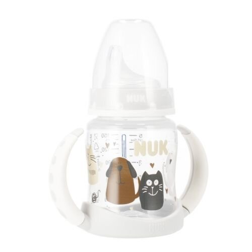 Butelka NUK First Choice do nauki picia posiada przyjemnie miękki, silikonowy ustnik, który umożliwia picie bez rozlewania. Zintegrowany system odpowietrzania NUK AIR SYSTEM wyrównuje ciśnienie w butelce, co pomaga zapobiegać kolce spowodowanej połykaniem powietrza przez dziecko. Butelka NUK First Choice do nauki picia z czujnikiem temperatury ułatwia naukę samodzielnego picia. Butelka posiada wskaźnik temperatury. Skala na butelce z czujnikiem temperatury zmienia kolor w zależności od temperatury zawartości. Jeżeli pokarm jest za gorący, zwykle niebieski wskaźnik zmienia kolor na biały. Uwaga: Wskaźnik temperatury NUK jest przewidziany jako dodatkowa weryfikacja. Prosimy o sprawdzenie temperatury bezpośrednio przed podaniem dziecku pokarmu. Przezroczysty silikon jest łatwy do czyszczenia i szczególnie odporny na zmiany temperatury. Nie zawiera szkodliwych substancji, można go wygotowywać, jest transparentny i posiada gładką powierzchnię