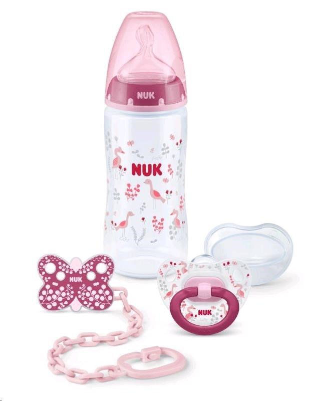 Dárkový set NUK Autíčka pro kluky. Krásný dárkový set, který je vhodný i jako milý dáreček. Set obsahuje lahvičku, šidítko, řetízek na šidítko a transparentní kryt na lahvičku a šidítko. Sada obsahuje:- 1 x NUK First Choice+ PP láhev 300ml Si 0-6m M- 1 x NUK Classic silikonový dudlík 0-6m- 1 x NUK transparentní kryt na dudlík- 1 x NUK řetízek na dudlíkCharakteristika:- lLáhev je vyrobena z lehkého a robustního materiálu včetně NUK First Choice+ savičky s flexibilní “Měkkou zónou“ pro ještě lepší přizpůsobení dětské puse a s novým Anti-Colic Air Systémem pro rovnoměrný tok vzduchu- dudlík NUK nové generace s ortodontickou savičkou, nový kroužek a anatomicky tvarovaný náústní štít- krytka na dudlík pro hygienické skladování- řetízek na dudlík NUK s praktickým a bezpečným klipem pro snadné otevírání a zavíránVhodné pro děti od 0-6 měsíců. Materiál plast. Klinicky testováno.