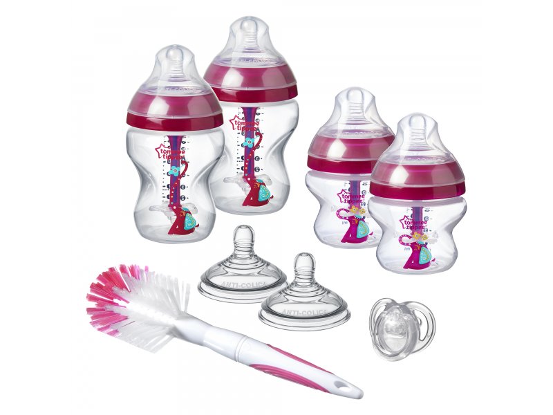 Výhodná sada kojeneckých lahviček Tommee Tippee ANTI-COLIC Advanced obsahuje 2x láhev 150ml se savičkou s pomalým průtokem 0m+, 2x láhev 260ml se savičkou s pomalým průtokem 0m+, 2x savičky se středním průtokem 3m+, 1x kartáč na láhve a savičky, 1x silikonové šidítko 0-6 měsíců.