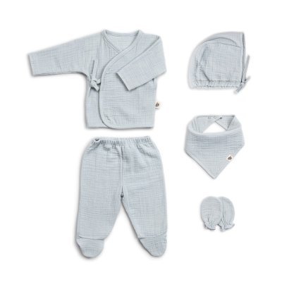 FUNNABABY Mušelínový Novorozenecký set 5 dílný Dove Grey vel. 0 - 3 m.