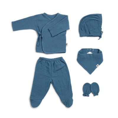 FUNNABABY Mušelínový Novorozenecký set 5 dílný Province Petrol vel. 0 - 3 m.