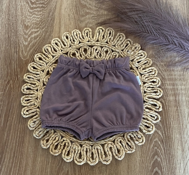 Bavlněné kraťásky s mašličkou Mamatti, Puntík, švestkové, vel. 92; 92 (18-24m)