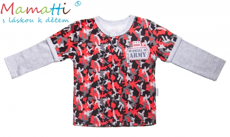 Zapínání trička je na patentky uprostřed.