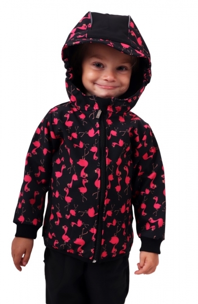 JOŽÁNEK Dětská softshellová bunda, plameňáci, černá, vel. 128