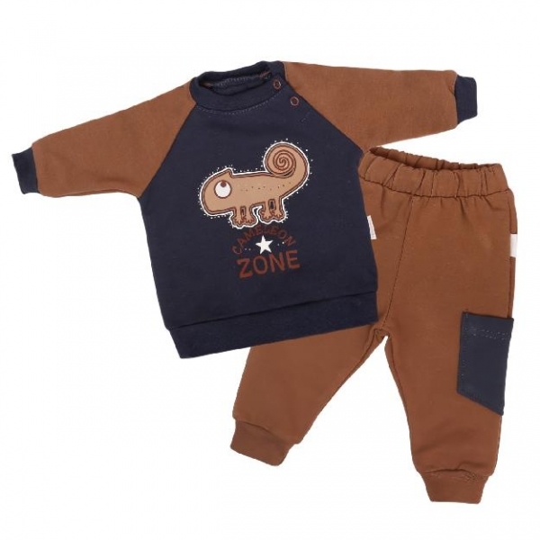 Mamatti Dětská tepláková souprava zapínání na boku Chameleon - hnědá, černá, vel. 62