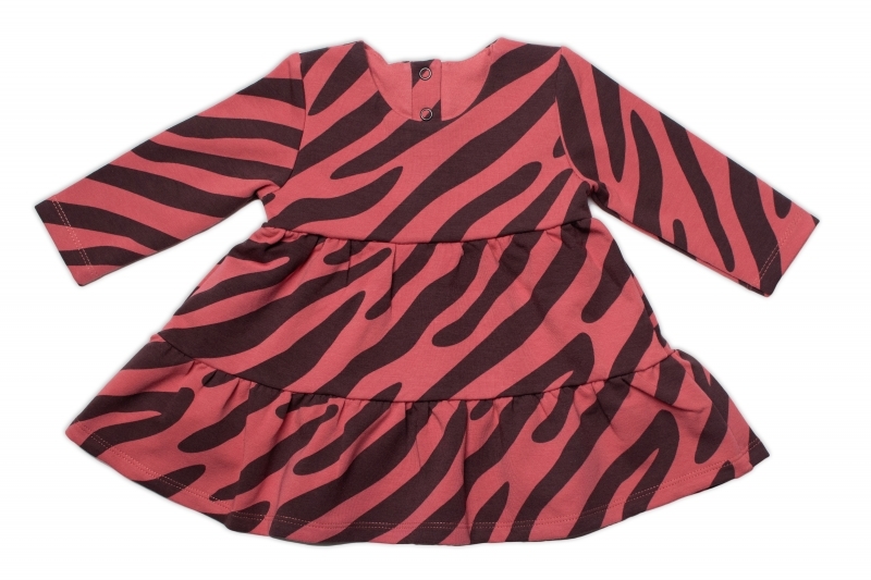 Dívčí bavlněné šaty Mrofi, Helen - cihlově červená s černými pruhy, vel. 74; 74 (6-9m)