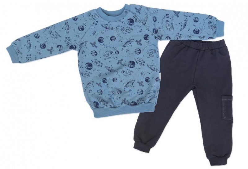 Mamatti Dětská tepláková souprava zapínání na boku Vesmír - modrá s potiskem