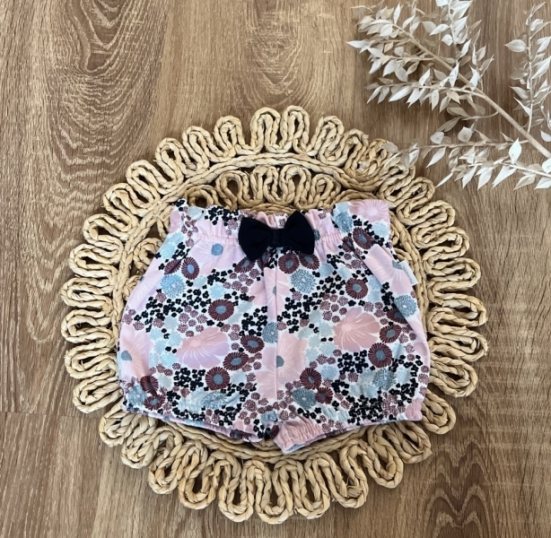 Bavlněné kraťásky s ozdobným páskem Mamatti, Květy, růžové s potiskem, vel. 80