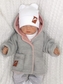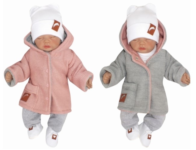 Z&Z Pletený, oboustranný svetřík, kabátek s kapucí, růžovo-šedý; 56 (1-2m)