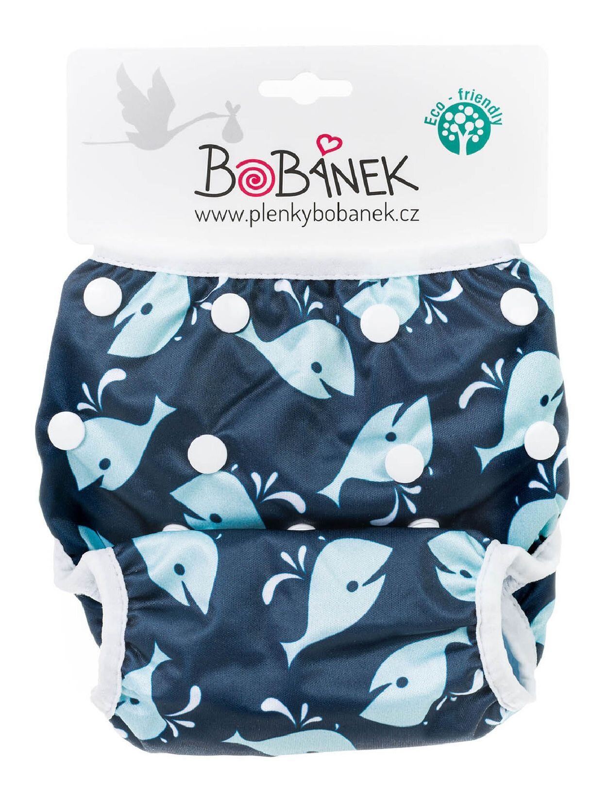 - Roztomilý design s modrými velrybami, který děti i rodiče zaujme