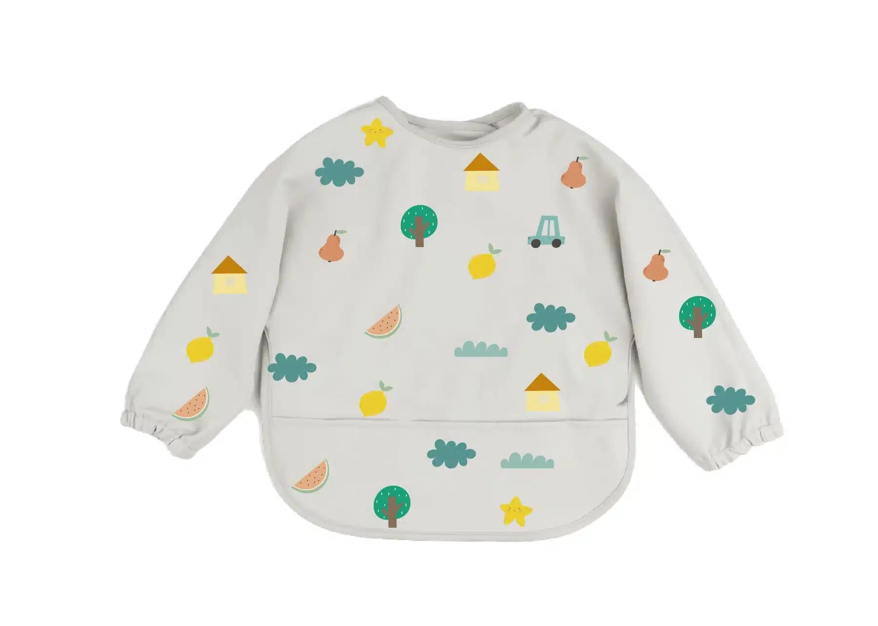 Podbradník je vyrobený z nepremokavej tkaniny, ktorá sa ľahko čistí, odoláva väčšine škvŕn a pachov. 100% recyklovaný Oeko-Tex polyester je nielen vodeodolný, ale je tiež možné ho umývať v práčke. Vodoodpudivý materiál robí tento všestranný podbradník nielen ideálnym na jedenie a kŕmenie, ale je tiež skvelý pre umelecké a remeselné projekty doma alebo v škôlke. Vstavané vrecko na zachytávanie pomáha udržať neporiadok pri jedle na minimum.