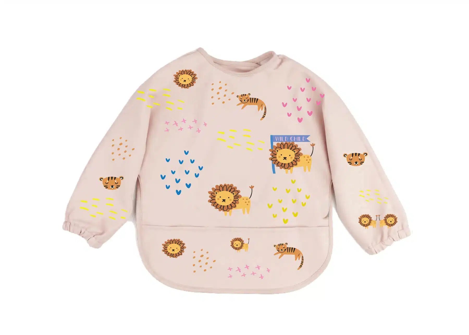 Podbradník je vyrobený z nepremokavej tkaniny, ktorá sa ľahko čistí, odoláva väčšine škvŕn a pachov. 100% recyklovaný Oeko-Tex polyester je nielen vodeodolný, ale je tiež možné ho umývať v práčke. Vodoodpudivý materiál robí tento všestranný podbradník nielen ideálnym na jedenie a kŕmenie, ale je tiež skvelý pre umelecké a remeselné projekty doma alebo v škôlke. Vstavané vrecko na zachytávanie pomáha udržať neporiadok pri jedle na minimum.